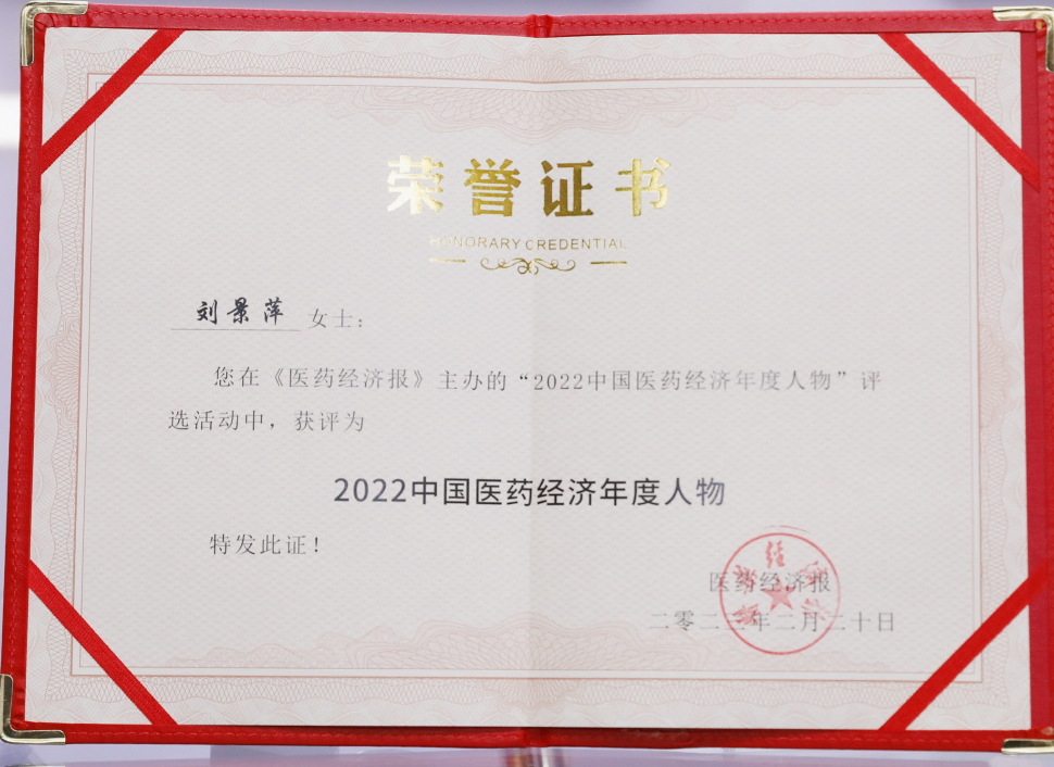 NG28药业集团董事长刘景萍当选“2022中国医药经济年度人物”